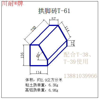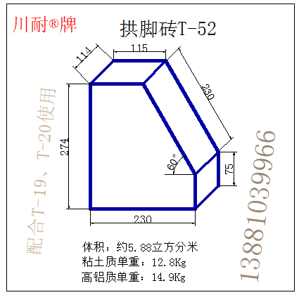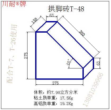 說明:粘土磚按PN-1一級(jí)材質(zhì)計(jì)算單重,高鋁磚按LZ-65一級(jí)高鋁磚計(jì)算單重。