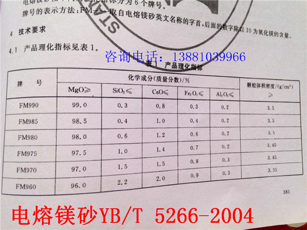 3.等級牌號:燒結鎂砂MS-92,中檔鎂砂MS-95,電熔鎂砂DMS-97。